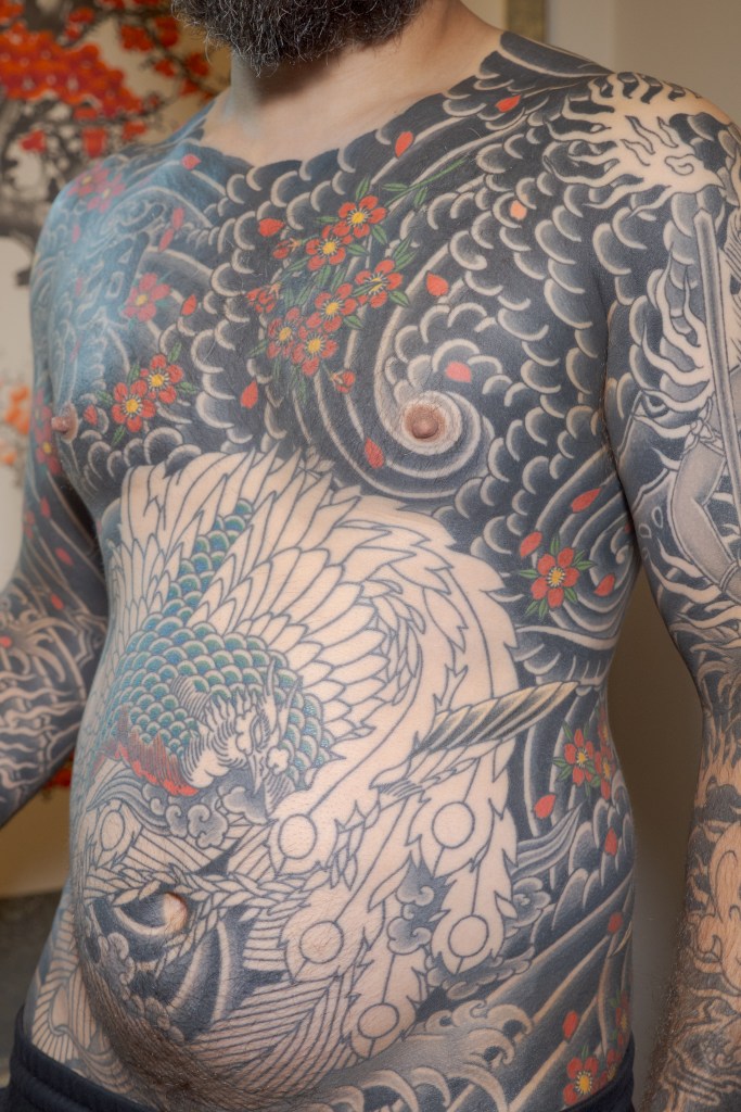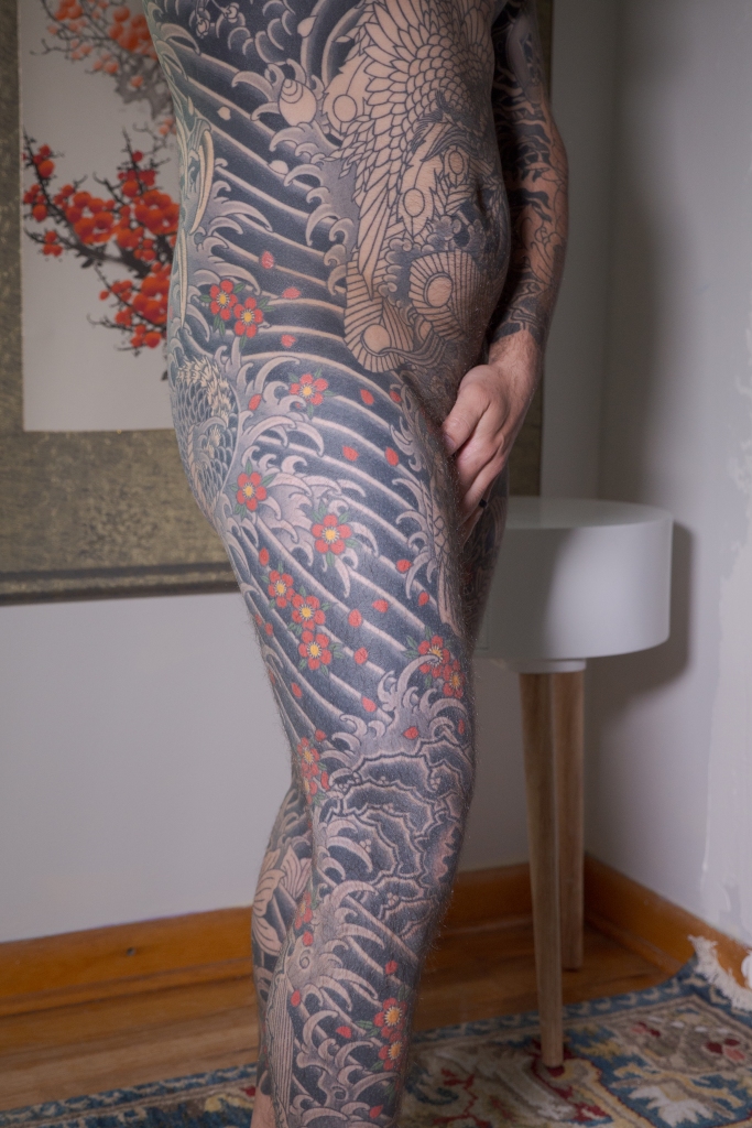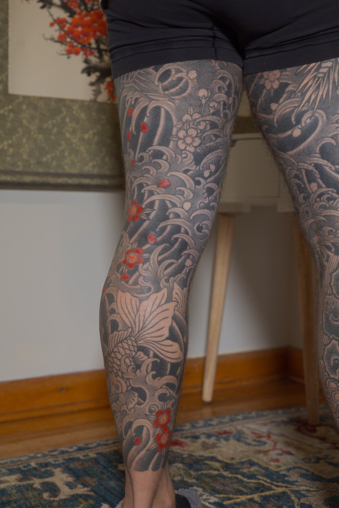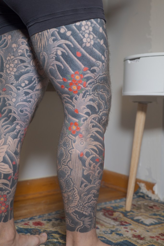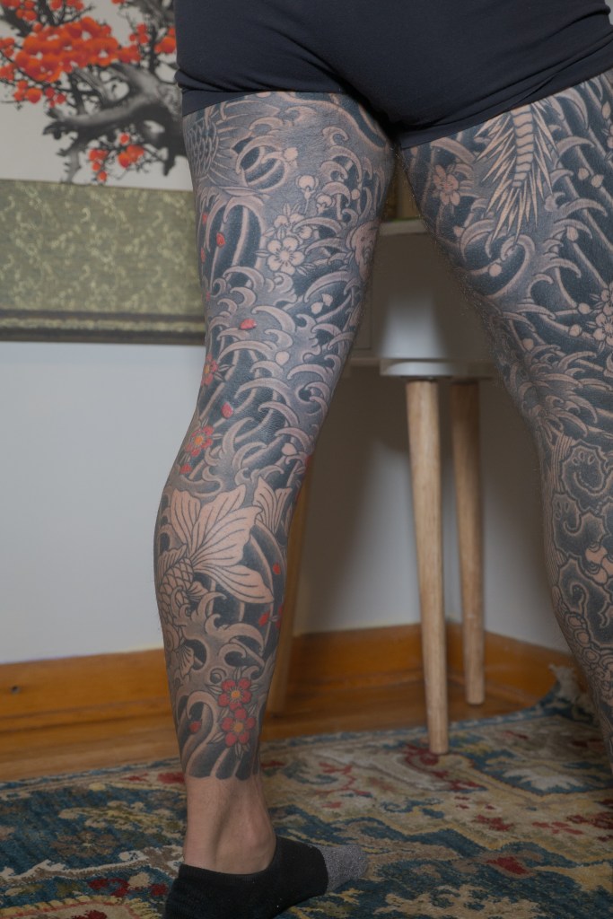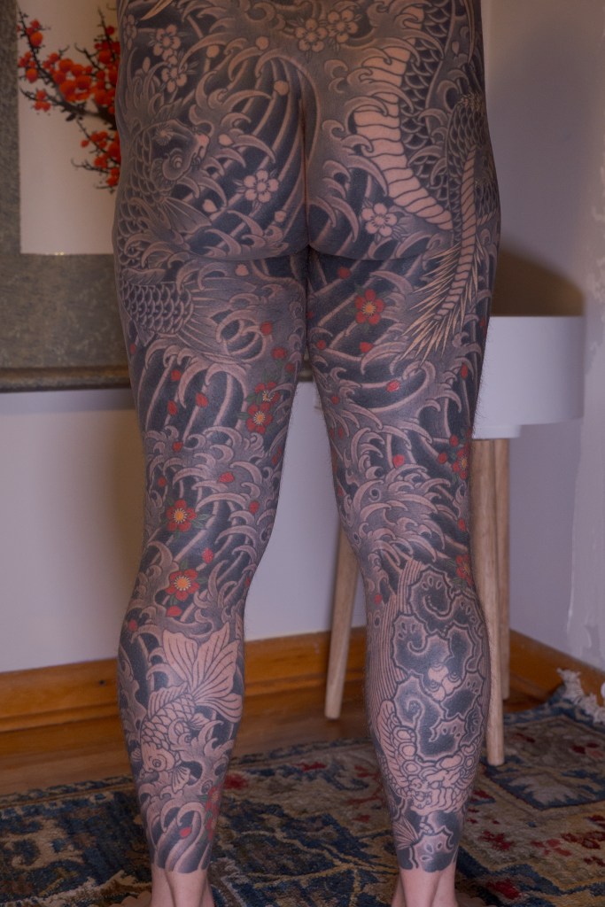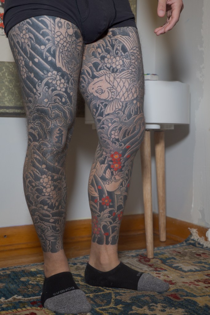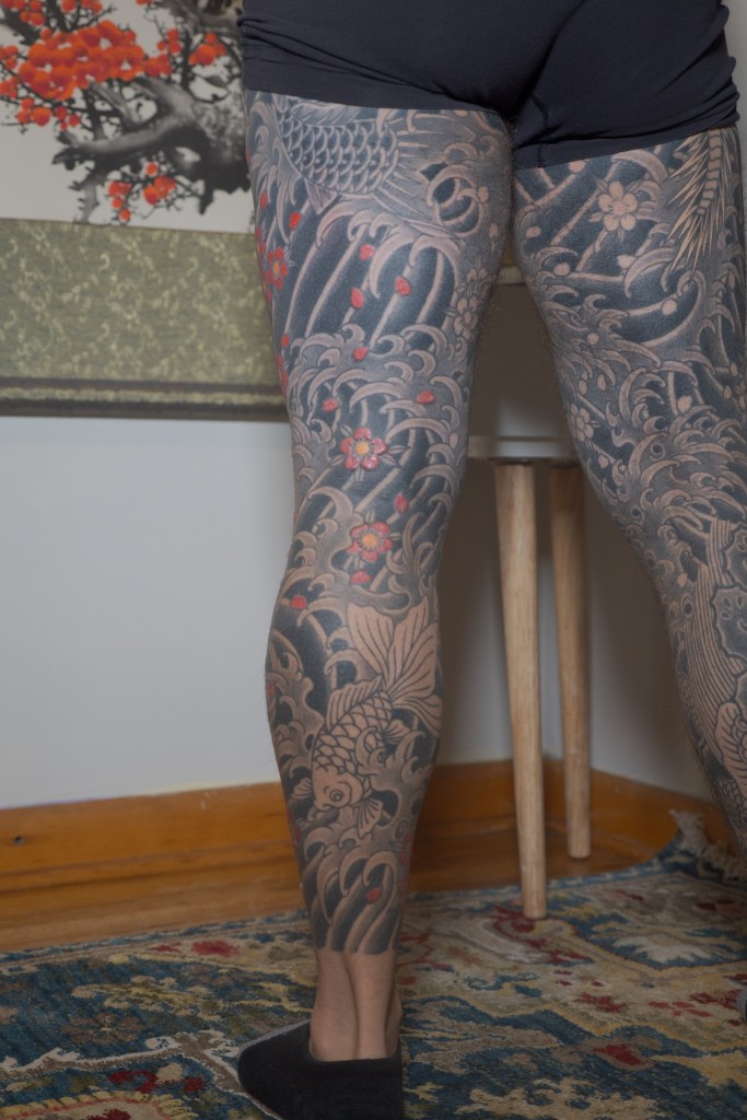 I’m sure there’s a handful of other thoughts that are escaping me now, but I’m sure I will bring them up in another post as they come to mind. Until then, to summarize the last two months: Horizakura tattooed me for 8 hours over the last 4 appointments (appointment numbers 149 – 152) during which he continued to fill in the cherry blossoms on my legs.