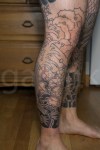 Despite my long absence, I don’t have much to say. Below are pictures from my 56th appointment with Horizakura. He began shading the background of my right leg, including thickening the rock lines. I really love the way those thick rock lines contrast with the thinner lines of the waves and cherry blossoms. It makes me all the more excited to see how the cave on my knee will look once those rocks are THICC.