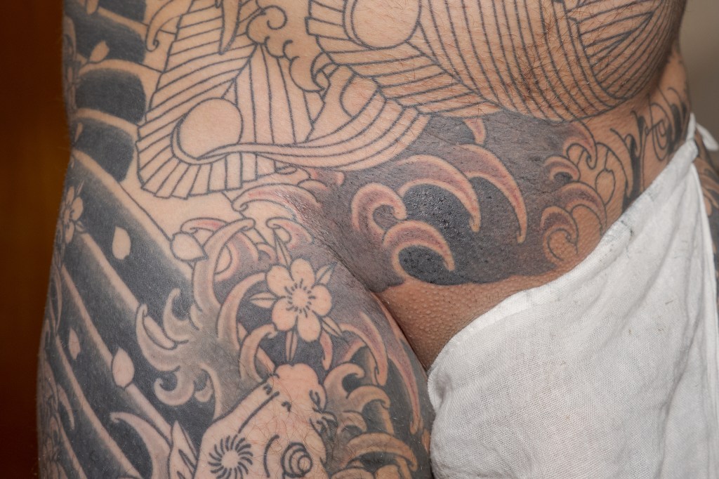 My 87th appointment with Horizakura was 1.5 hours of tebori from the top of my thigh and across my pubic region. I really can’t begin to explain how little I enjoy typing “pubic region” but I don’t really know what else to say. It is what it is. This was a nice appointment, nothing too far out. Just some nice music and light chat. I was glad to be back as there have been a variety of circumstances that have kept us from maintaining our usual two week schedule. I’ve already cancelled my next appointment since my wife and I are going on a (very necessary) vacation. We’re averaging about 1 appointment per month in the new year which is definitely a bummer, but hopefully we will pick up steam as we move into spring. It has gotten to the point that I don’t really feel like myself when I’m not getting tattooed or healing a fresh tattoo. It makes me feel disconnected in a way that’s a little difficult to articulate.